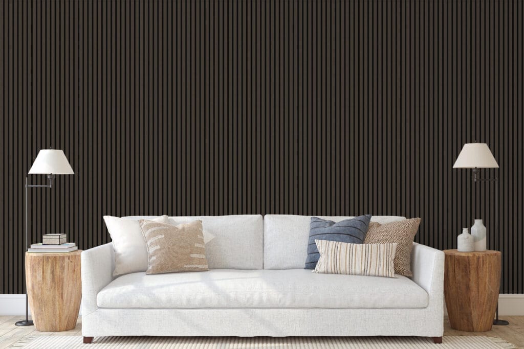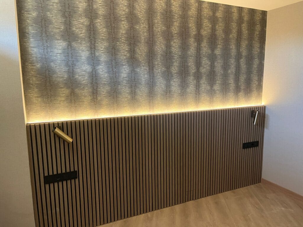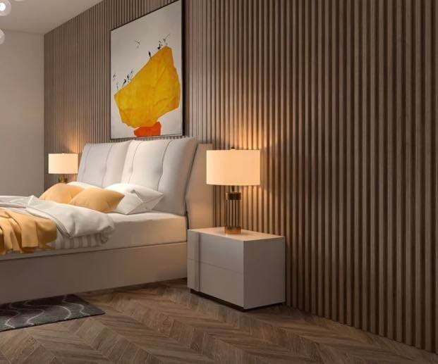 Para quienes buscan un acabado más exclusivo, contamos con revestimientos alistonados de PVC que elevan la estética del ambiente, así como paneles acústicos con base fonoabsorbente ignífuga, perfectos para mejorar el confort sonoro. También ofrecemos listones de madera chapada con un elegante acabado en barniz mate (2700 x 325 x 21 mm), ideales para aportar calidez y estilo.